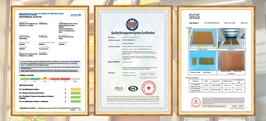 ⭐:Melors maintains strict thickness control from PO sheet lamination to final inspection—ensuring consistent marine deck appearance and durability.